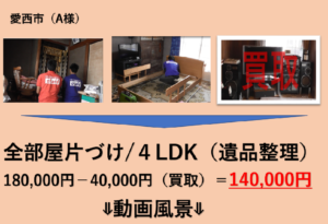 HOME > お部屋のお片付け(遺品整理/実家整理/ごみ屋敷/引越しゴミ/倉庫ゴミ)エコエコ > 2動画風景 Twitter シェア Google+ Pocket B!はてブ LINE ◆おすすめ記事一覧◆ 1 愛知の遺品整理業者(仏壇供養、買取)様々なサービス 2 ゴミ屋敷を徹底お片付けする会社【お部屋の不用品を一掃】愛知、岐阜、三重県 3 家屋解体(家の解体+中身のゴミの処分)坪28,000より 4 【退去ゴミの片付け】ハウスクリーニング/カーテンレール・風呂釜の取り外しまで 5 引っ越しと不用品処分をまとめて(施設、新居)近距離現場 投稿日: author