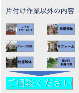 HOME > お部屋のお片付け(遺品整理/実家整理/ごみ屋敷/引越しゴミ/倉庫ゴミ)エコエコ > 2各種 Twitter シェア Google+ Pocket B!はてブ LINE ◆おすすめ記事一覧◆ 1 愛知の遺品整理業者(仏壇供養、買取)様々なサービス 2 ゴミ屋敷を徹底お片付けする会社【お部屋の不用品を一掃】愛知、岐阜、三重県 3 家屋解体(家の解体+中身のゴミの処分)坪28,000より 4 【退去ゴミの片付け】ハウスクリーニング/カーテンレール・風呂釜の取り外しまで 5 引っ越しと不用品処分をまとめて(施設、新居)近距離現場 投稿日: author